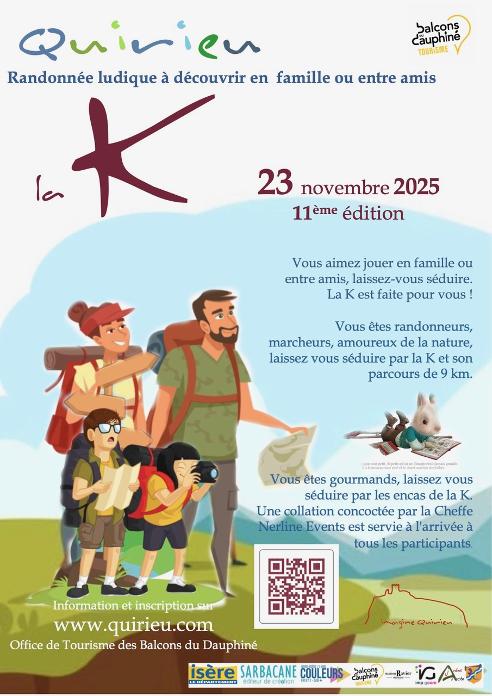 Randonnée K2025 – Interview Véronique Boulieu La 11ème édition de la Randonnée K2025, organisée dans la cité médiévale de Quirieu par l’association Imagine Quirieu, aura lieu le dimanche 23 novembre 2025 à partir de 8h30. Vous aimez jouer en famille ou entre amis, laissez-vous séduire par cette randonnée de 8km qui vous emmènera sur les traces de Jacomius. Vous terminerez cette promenade avec une surprise concocté par la Cheffe Nerline Events. Explications Patrick Perraudin, président de l’association. www.quirieu.com