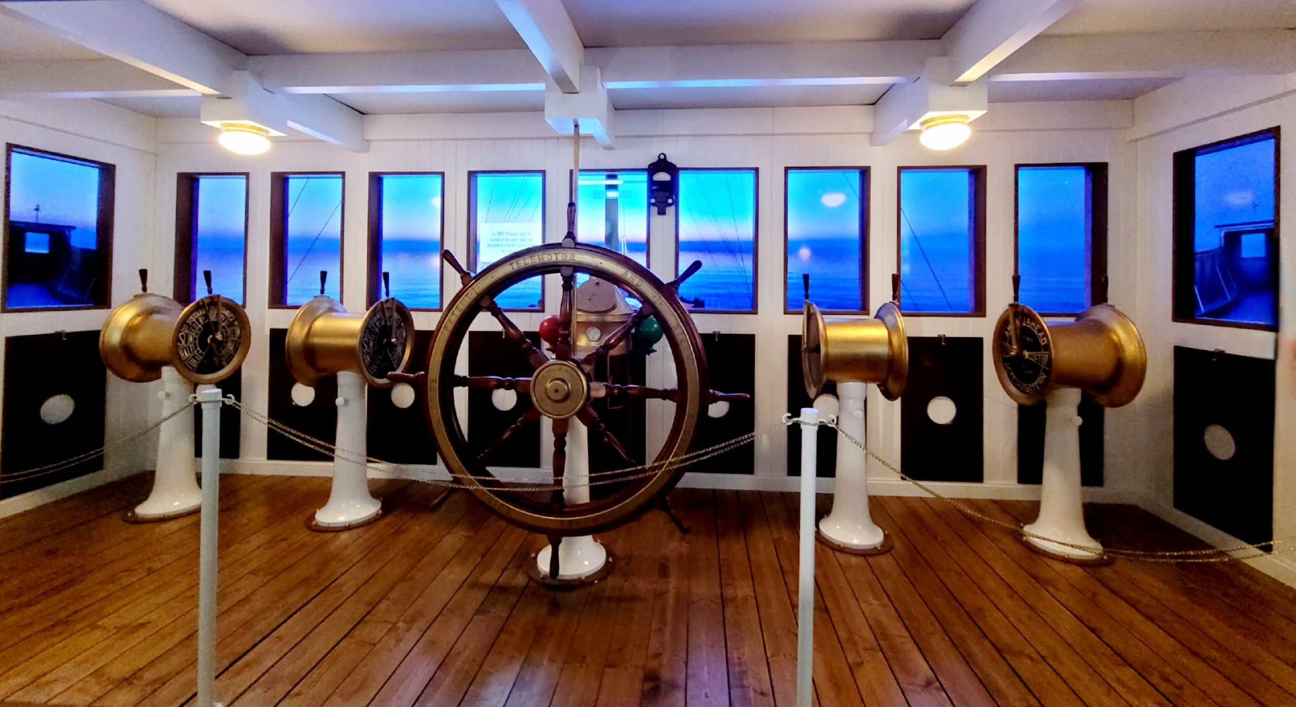 Photo de la reconstitution de la salle des commandes du Titanic prise lors de l’expérience