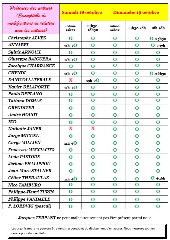 Les horaires des séances de dédicaces :
